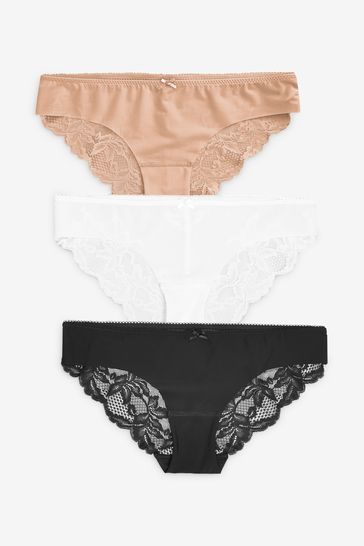 Black/White/Nude No VPL Lace Back Briefs 3 Pack