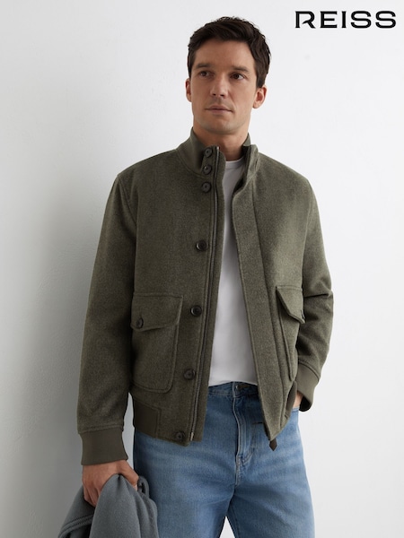 Reiss Green Hadley Wool-Blend Funnel-Neck Bomber Jacket