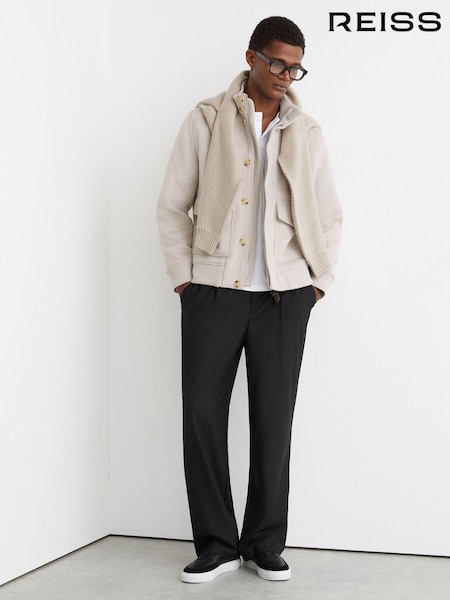Reiss Oatmeal Hadley Wool-Blend Funnel-Neck Bomber Jacket