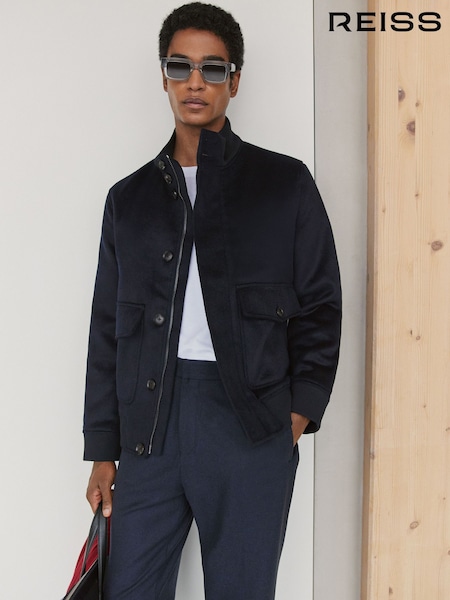 Reiss Navy Hadley Wool-Blend Funnel-Neck Bomber Jacket