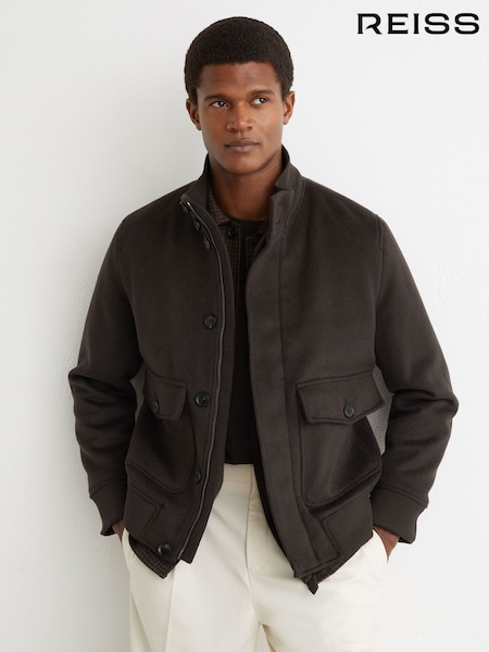 Reiss Chocolate Brown Hadley Wool-Blend Funnel-Neck Bomber Jacket