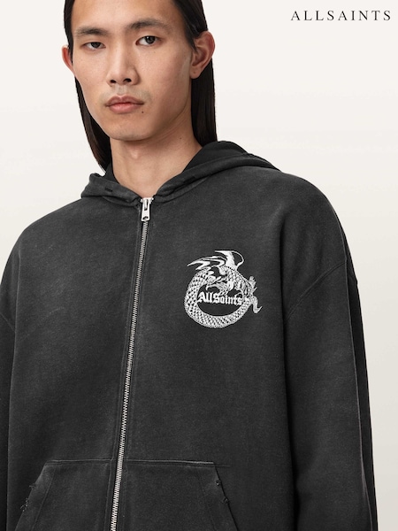 AllSaints Black Terra Zip Through Hoodie