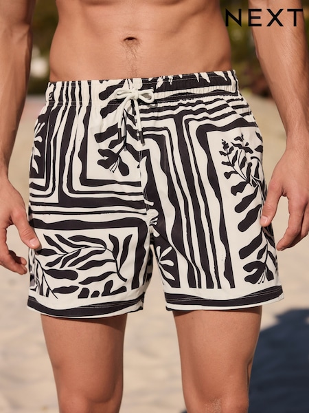 Black/White Tile Print Swim Shorts 5 Inch