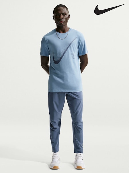 Nike Work Blue Dri-FIT Large Swoosh Graphic Training T-Shirt
