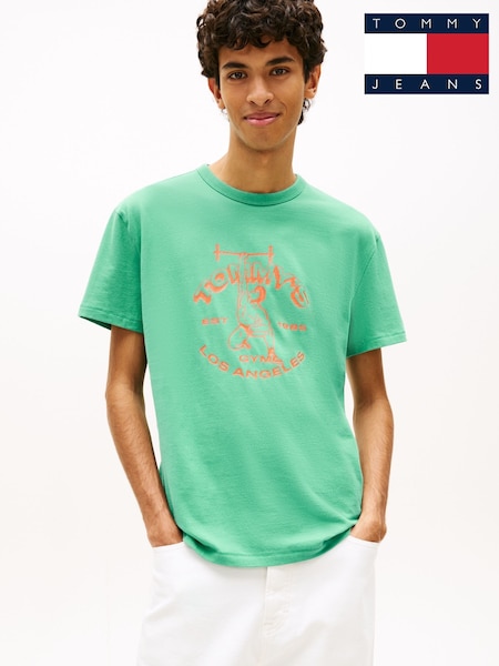 Tommy Jeans Green Graphic Peached Jersey T-Shirt