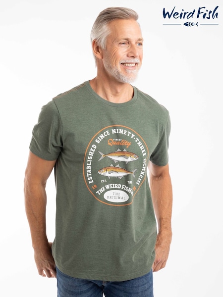 Weird Fish Green Fish Stamp Front Print Graphic T-Shirt