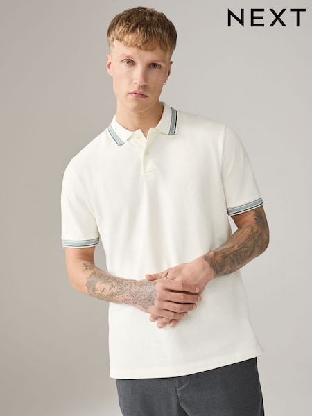 Black/Brown/Ecru Short Sleeve Tipped Pique Polo Shirts 3 Pack