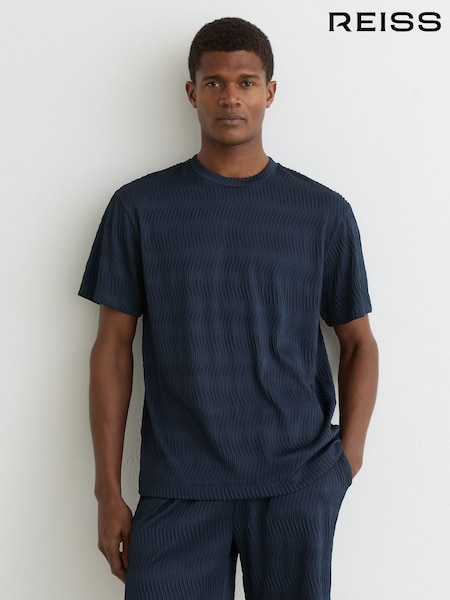 Reiss Airforce Blue Cox Textured-Wave Relaxed-Fit T-Shirt