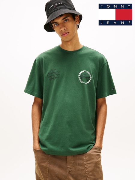 Tommy Jeans Green Circular Back Logo Relaxed T-Shirt