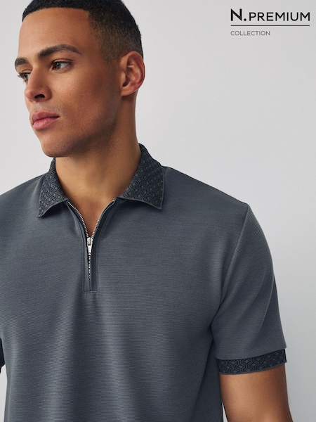 Slate Grey Short Sleeve Smart Collar Polo Shirt