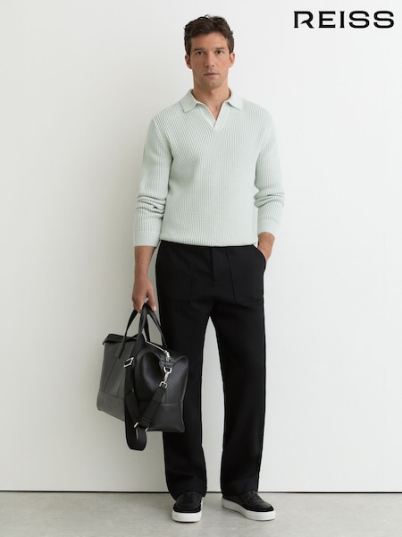 Reiss Soft Sage/White Dunbar Cotton-Blend Textured-Knit Polo Jumper