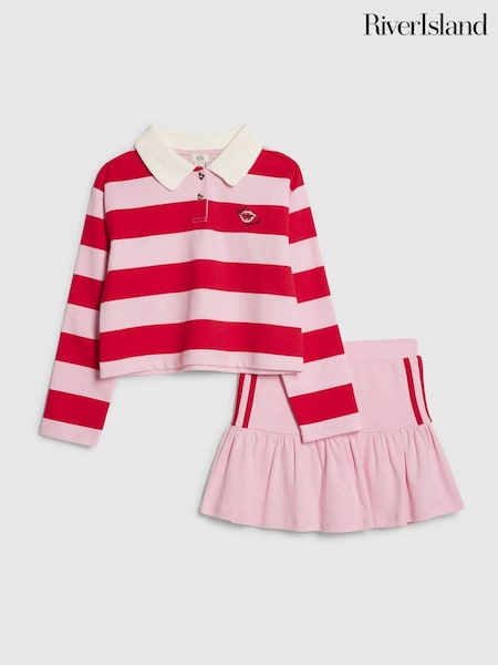 River Island Pink Long Sleeve Stripe Top & Skirt Set