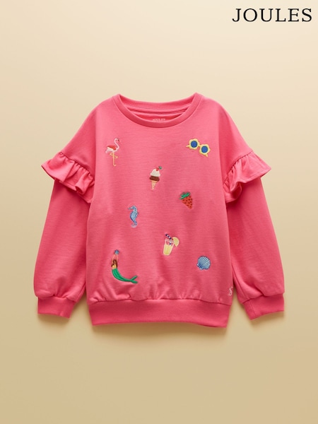 Joules Girls' Pink Frill Sleeve Crew Neck Sweatshirt