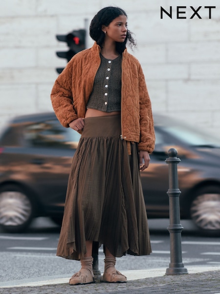 (585)Maximise your wardrobe in a maxi skirt featuring latest pleated designs and floral patterns. Taking your look to new lengths is the timeless black that is a perfect combination of elegance and style - pairing it with a chic sequined top and completing with ankle strap heels. Perhaps go retro with crop top and sleek stilettoes.
