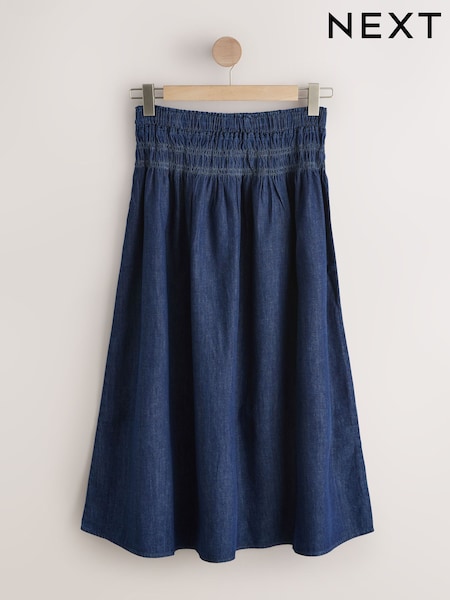 Denim Dark Blue Shirred Waist Maxi Skirt