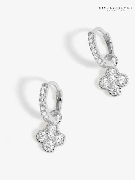 Simply Silver Sterling Silver 925 Cubic Zirconia Clover Charm Hoop Earrings