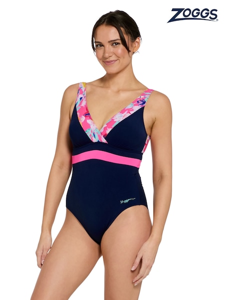 Zoggs Blue Squareback Swimsuit With Fixed Foam Cups