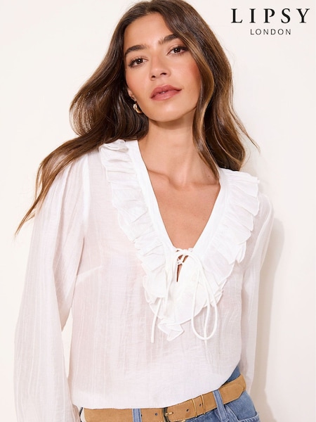 Lipsy White Ruffle Tie Blouse