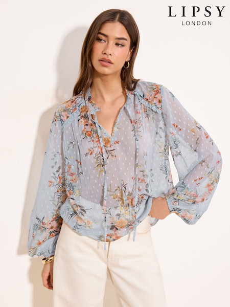 Lipsy Black Polka Dot Short Sleeve Printed Crinkle Top